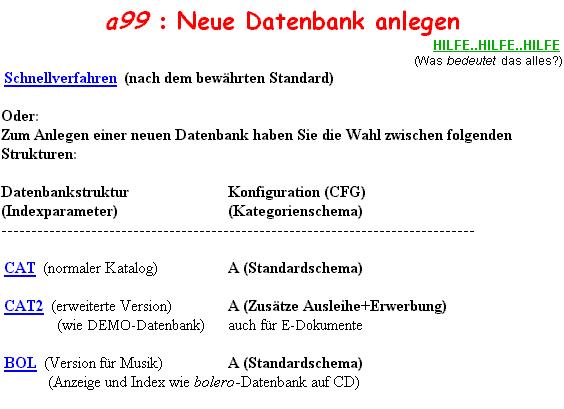 Wer eine eigene Datenbank genau nach dem Schema der Demo-Datenbank beginnen will, braucht nur auf das Schnellverfahrenzu klicken. Es entsteht dann ein Unterverzeichnis namens KATALOG und darauf die notwendigen Dateien. Darüber informiert Sie das Programm dann in geeigneter Weise, auch über die Desktop-Verknüpfung, die Sie anlegen können, um die Datenbank in Zukunft zu öffnen.