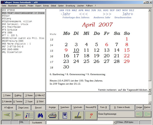 Hat das System den FLEX kalender.flx gefunden, so wird er ausgeführt und Sie sollten im Anzeigefeld von allegro folgendes dargestellt bekommen.